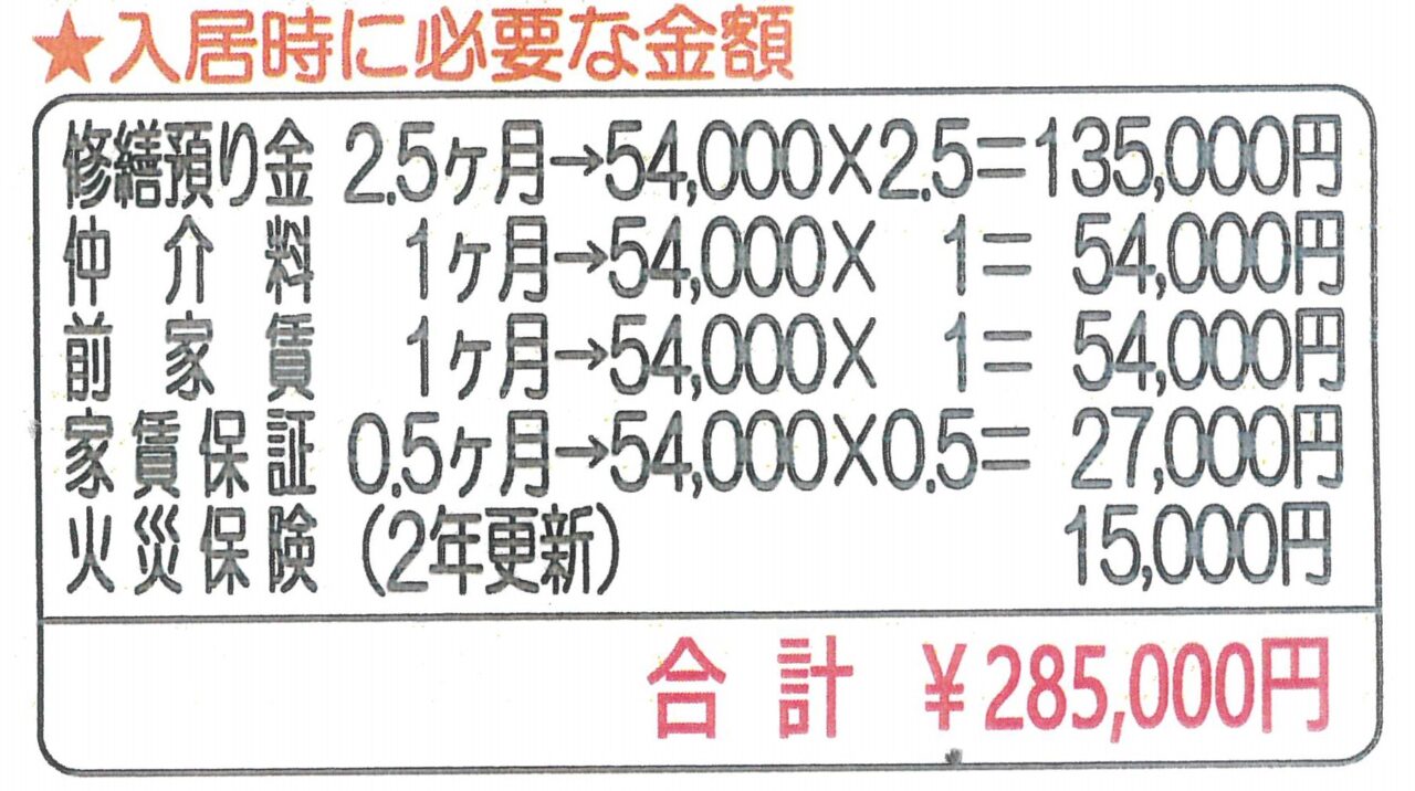 前家賃 54,000円